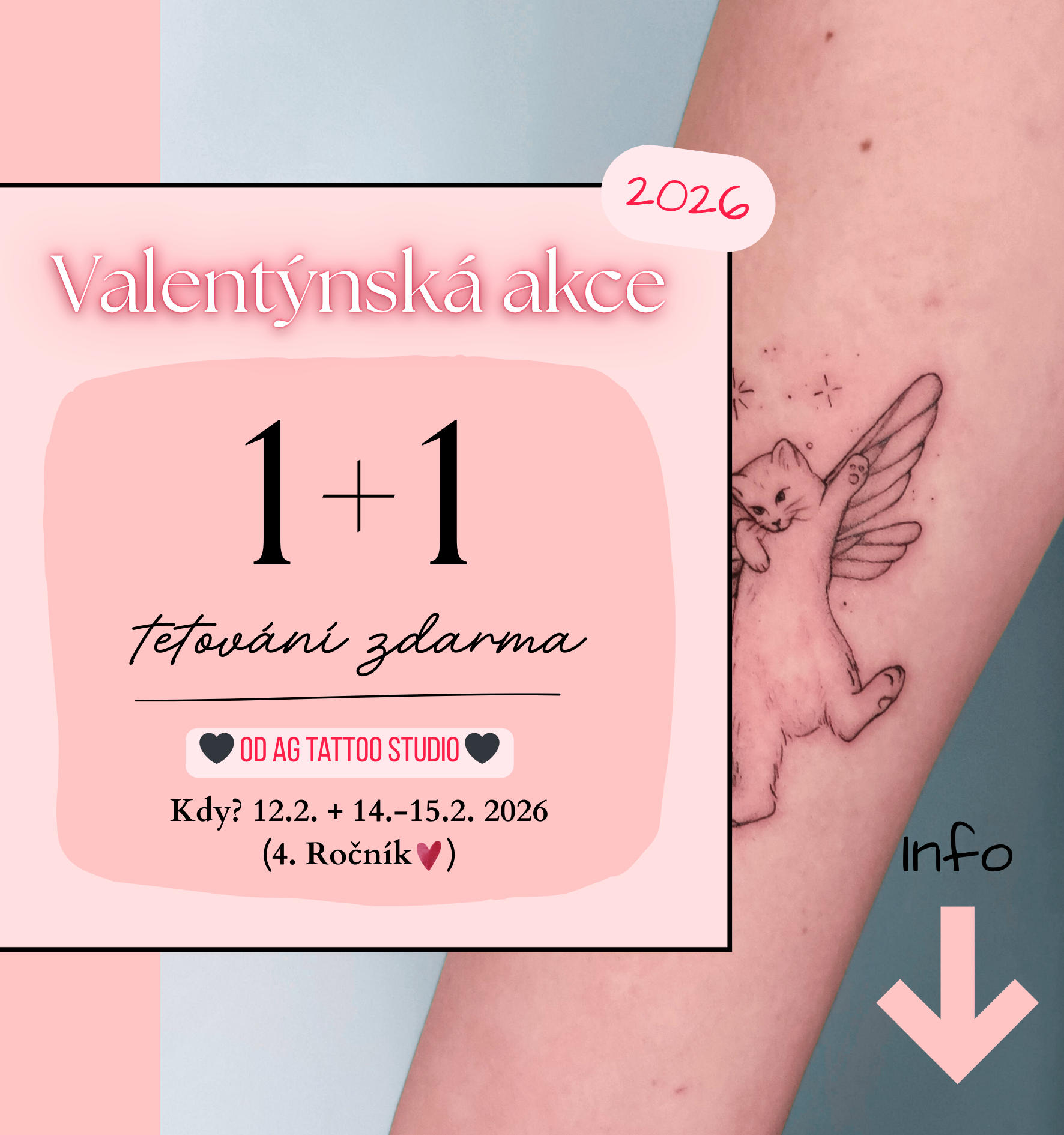 Již tradiční valentýnská akce od AG tatoo studio, která bude letos probíhat 12.2. a o víkendu 14.2. a 15.2. (.. a jako bonus platí akce i ve středu 11.2. pro walkins :))